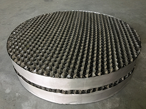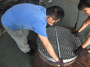 我司質(zhì)量檢測人員對孔板波紋填料進(jìn)行檢測